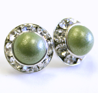 DISCONTINUED ITEM # AR621 FAUX PEARLS PREMIUM quality. made in japan or Korea Half Dome-Shaped Pearl Color: Green Pearl Swarovski Rondelle Stud earrings With Crystal Green Pearl These stud earrings are bezel set in silver A brilliant round Swarovski bezel set surrounded by channel set round crystals. Superior Quality Approximately 15mm in diameter with post closure Made in USA (ul/ce84(l)p/bg-d/br) sold by each piece |