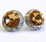 ![]() ITEM # AR197 Currently in stock: 3 CRYSTALLIZED™ SWAROVSKI ELEMENTS, Round Stones, 1028 XILION Chaton or 1122 Rivoli Stones with platinum foiling Color: Light Topaz Colour Code: 226 Swarovski Rondelle Post Earrings with rivoli or chaton stones These stud earrings are bezel set in silver A brilliant Faux Pearl bezel set surrounded by channel set round crystals. Superior Quality Approximately 11mm in diameter with post closure (ul/ce84(m)p/ah-d/br) sold by each piece |