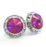 ITEM # AR613 CRYSTALLIZED™ SWAROVSKI ELEMENTS, Round Stones, 1122 Rivoli Stones with platinum foiling Color: Fuchsia Colour Code: 502 Swarovski Crystal With Crystal Channel Stud Earrings These stud earrings are bezel set in silver A brilliant round Swarovski bezel set surrounded by channel set round crystals. Superior Quality Approximately 15mm in diameter with post closure Made in USA (ul/ce84(l)p/bg-d/br) sold by each piece |