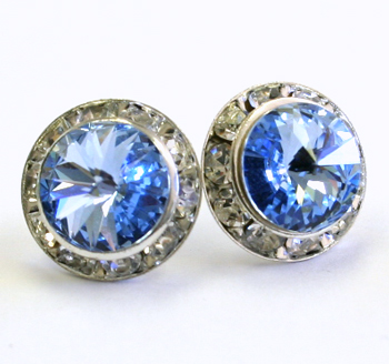 ITEM # AR614 CRYSTALLIZED™ SWAROVSKI ELEMENTS, Round Stones, 1122 Rivoli Stones with platinum foiling Color: Montana Colour Code: 207 Swarovski Crystal With Crystal Channel Stud Earrings These stud earrings are bezel set in silver A brilliant round Swarovski bezel set surrounded by channel set round crystals. Superior Quality Approximately 15mm in diameter with post closure Made in USA (ul/ce84(l)p/bg-d/br) sold by each piece |