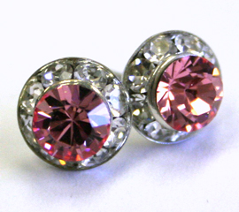 ![]() ITEM # AR200 CRYSTALLIZED™ SWAROVSKI ELEMENTS, Round Stones, 1028 XILION Chaton or 1122 Rivoli Stones with platinum foiling Color: Light Rose Colour Code: 223 Swarovski Rondelle Post Earrings with rivoli or chaton stones These stud earrings are bezel set in silver A brilliant Faux Pearl bezel set surrounded by channel set round crystals. Superior Quality Approximately 11mm in diameter with post closure Made in USA (ul/ce84(m)p/ah-d/br) sold by each piece |